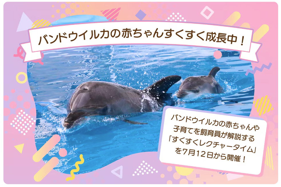かわいらしく遊泳し、「イルカの親子愛」ともいえる育児シーンが微笑ましく、早くも人気者となっています。