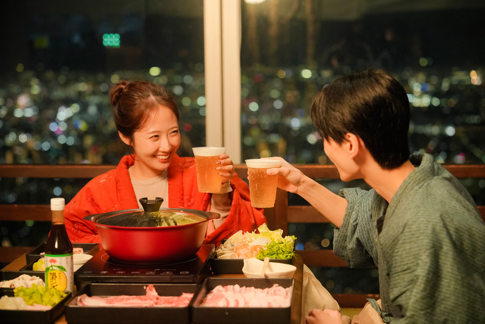 あべのハルカスの展望台 「ハルカス300」 では絶景を眺めながらこたつでのお食事をお楽しみいただけます。おでんプラン、しゃぶしゃぶ鍋プランをご用意しております。特別な雰囲気の中で味わう食事をお楽しみください!