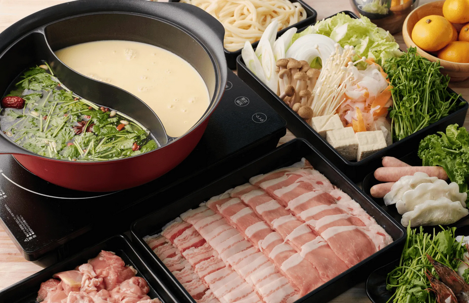 ■選べるスープしゃぶしゃぶ鍋 ⿊毛和⽜&茶美豚&備中高原鶏コース