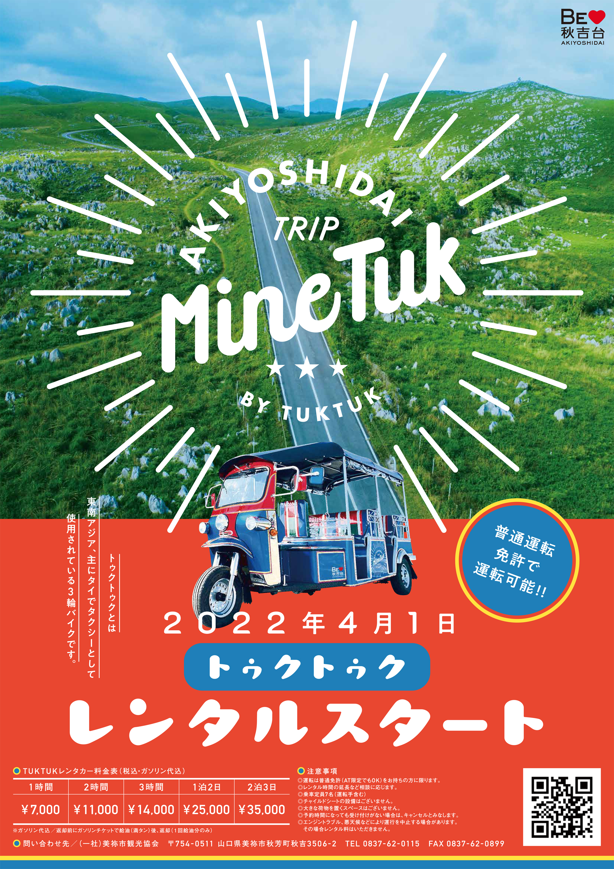 あのトゥクトゥクで秋吉台を軽快に駆け抜ける!